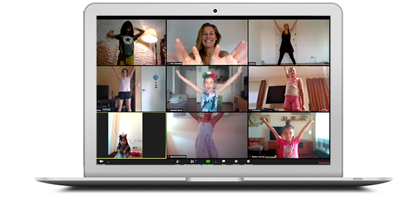 Somos especialistas en niños. Igual que en nuestras clases presenciales, hay grupos desde 2 años hasta adolescentes.